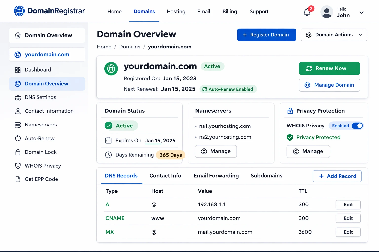 - Login to your domain registrar